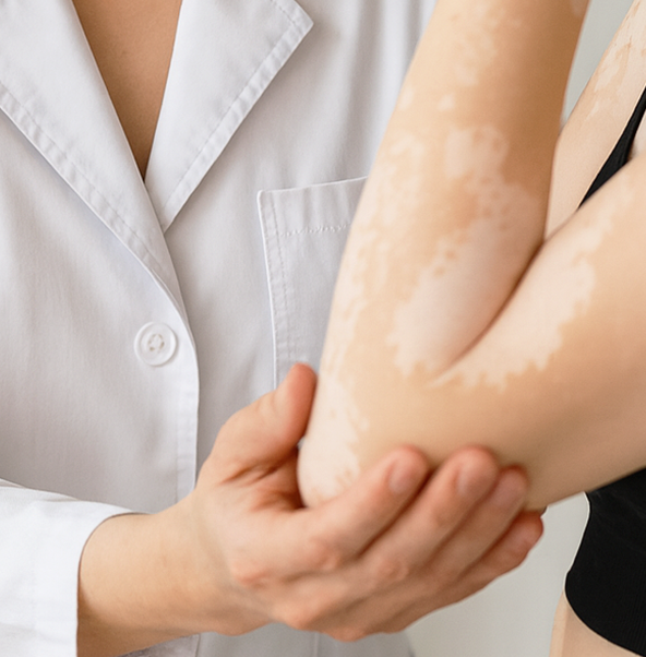 멜라닌 세포가 소실되어 피부에 다양한 크기와 모양의 흰 반점이 나타나는 질환입니다. 가려움은 거의 없지만 미용적인 문제로 환자에게 큰 스트레스를 줍니다.