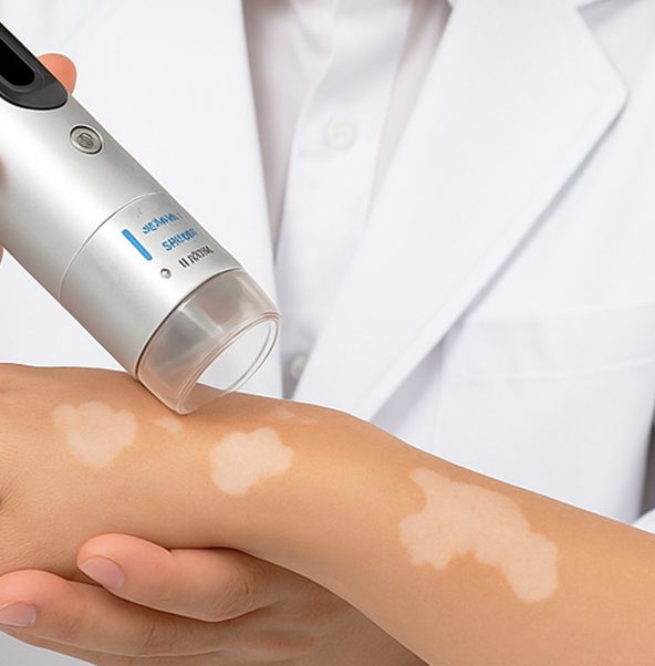멜라닌 세포 자극 및 색소 회복을 유도하고, 광선치료를 병행합니다.