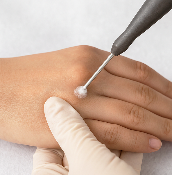 사마귀는 냉동치료, 레이저치료 등으로 바이러스 감염 부위 제거합니다.